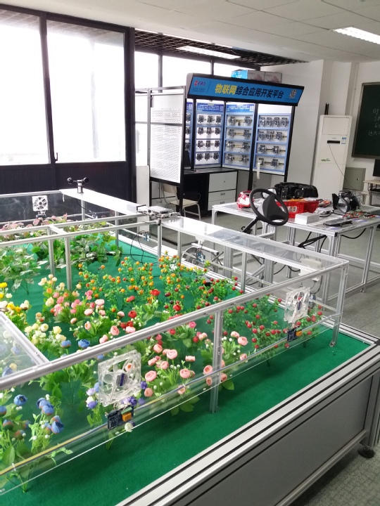 物聯網實驗室由智能溫室監控系統、車聯網系統和物聯網綜合應用開發平臺構成。包含Zigbee模塊、GPRS模塊、藍牙模塊、WIFI模塊、RFID模塊、一系列傳感器、控制板以及測試工具。實驗室既可滿足日常本科教學要求,同時注重創新實驗及項目實踐,為教師科研教學以及學生創新實驗提供方便的操作環境。