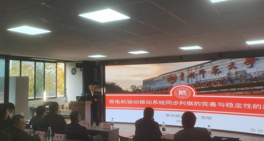 貴州師范大學(xué)蘇明教授作了《雙電機(jī)驅(qū)動振動系統(tǒng)同步判據(jù)的完 善與穩(wěn)定性的思考》的精彩報告。