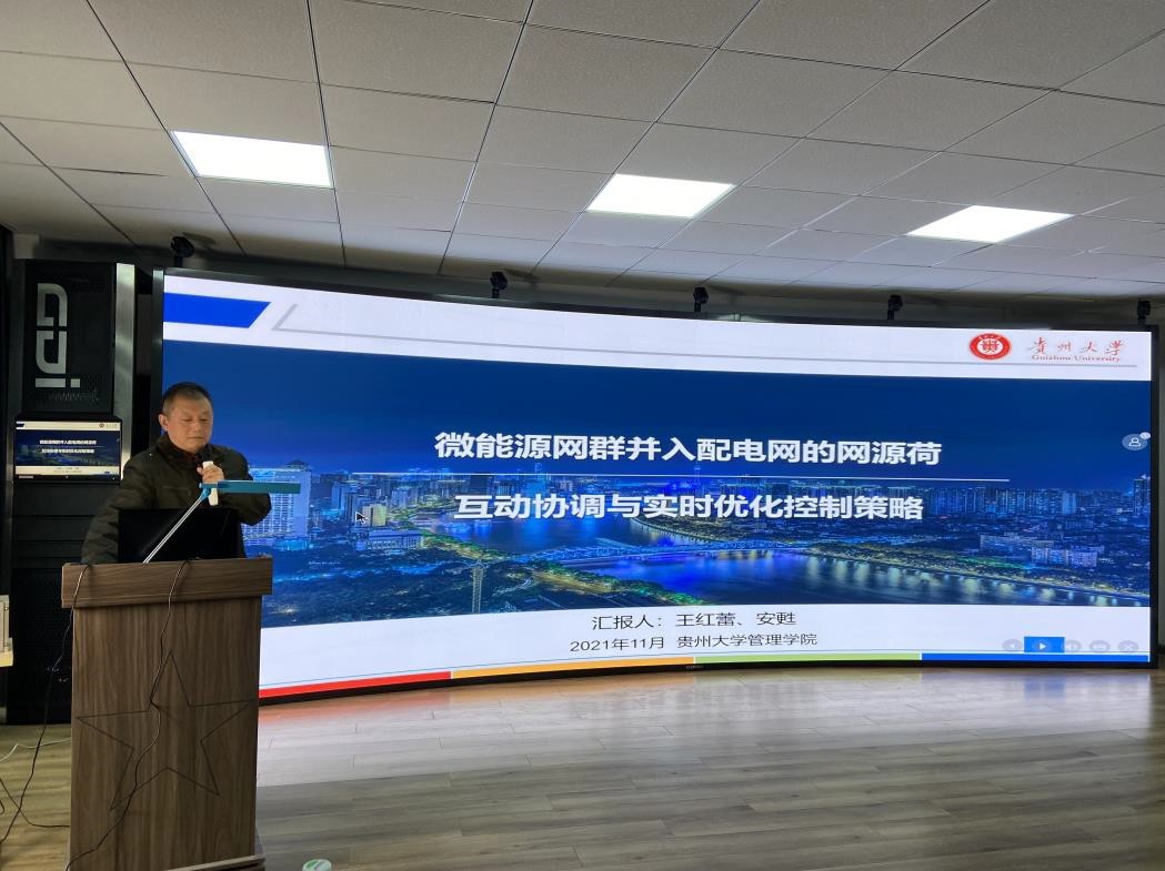 貴州大學(xué)王紅蕾教授作了《微電網(wǎng)群并入配電網(wǎng)的網(wǎng)源荷互動協(xié) 調(diào)與實時優(yōu)化控制策略》的精彩報告。
