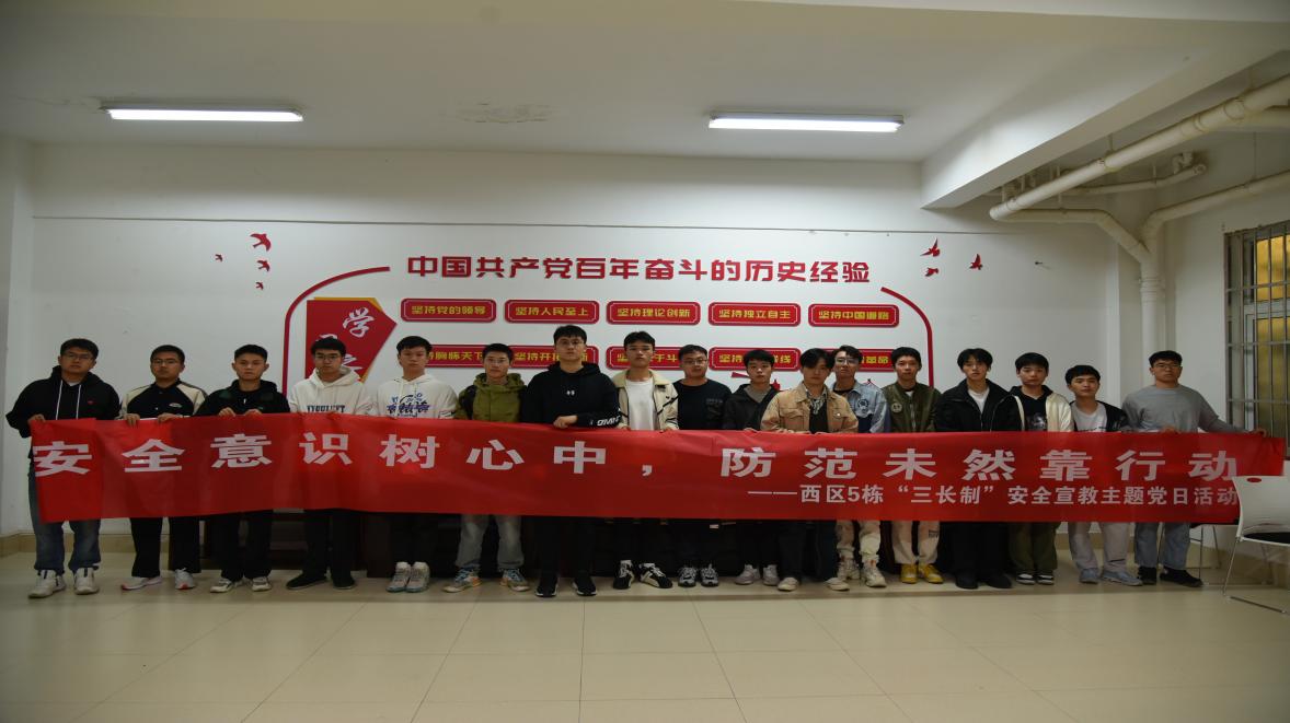2023年11月11日,學院和化學與化工學院聯合舉辦“安全意識樹心中,防范未然靠行動”西區5棟“三長制”安全宣教主題黨日活動,5棟學生黨員參與本次活動。