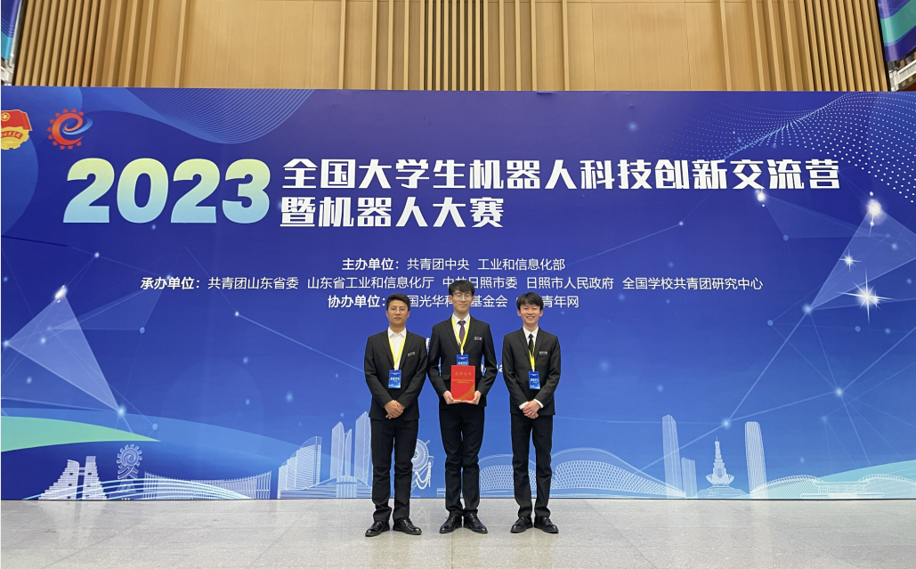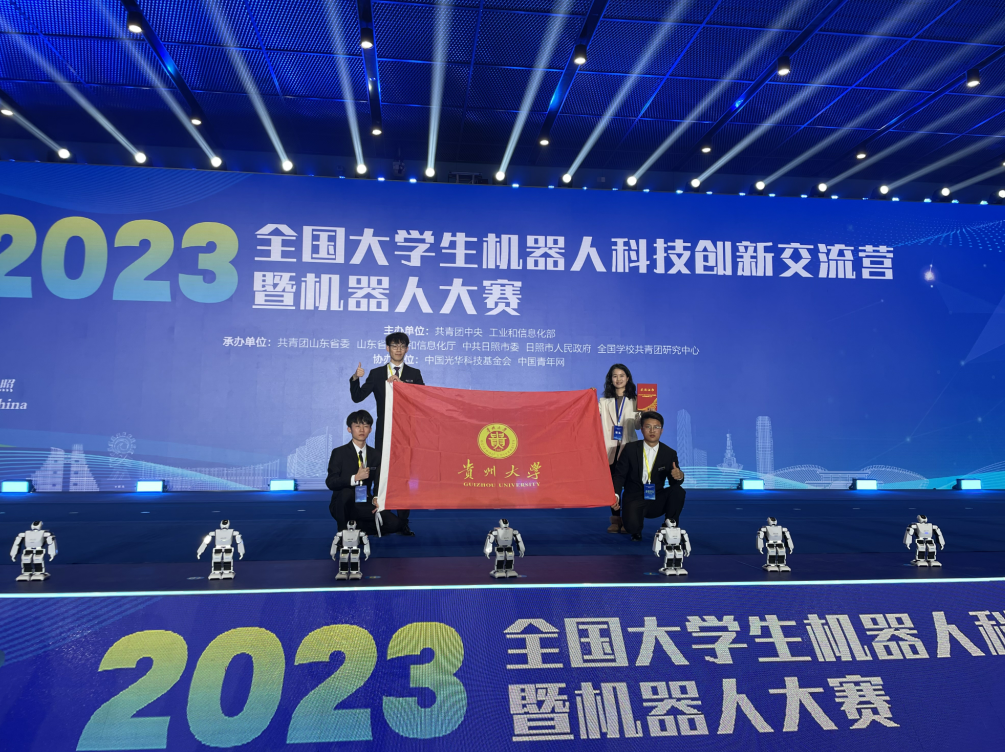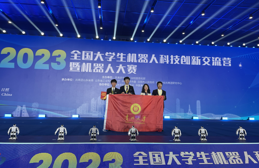2023年12月17日至19日,由共青團中央、工業和信息化部主辦的“2023年全國大學生機器人科技創新交流營暨機器人大賽”終審決賽在山東日照舉行。貴州大學3522集團新網站研究生團隊在大賽中脫穎而出,獲得了全國一等獎的榮譽。