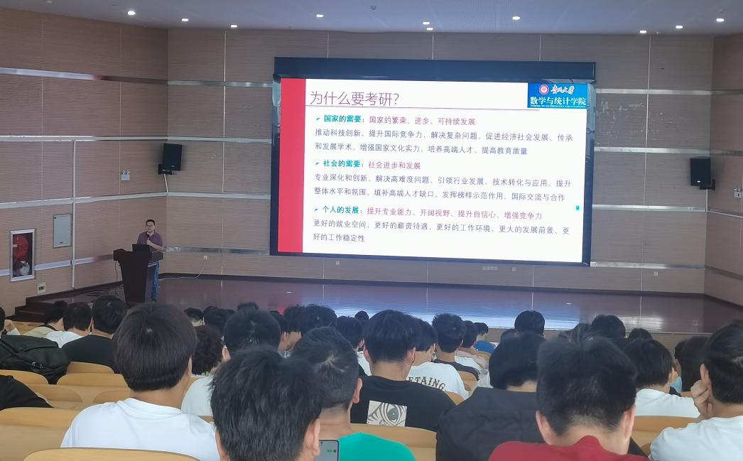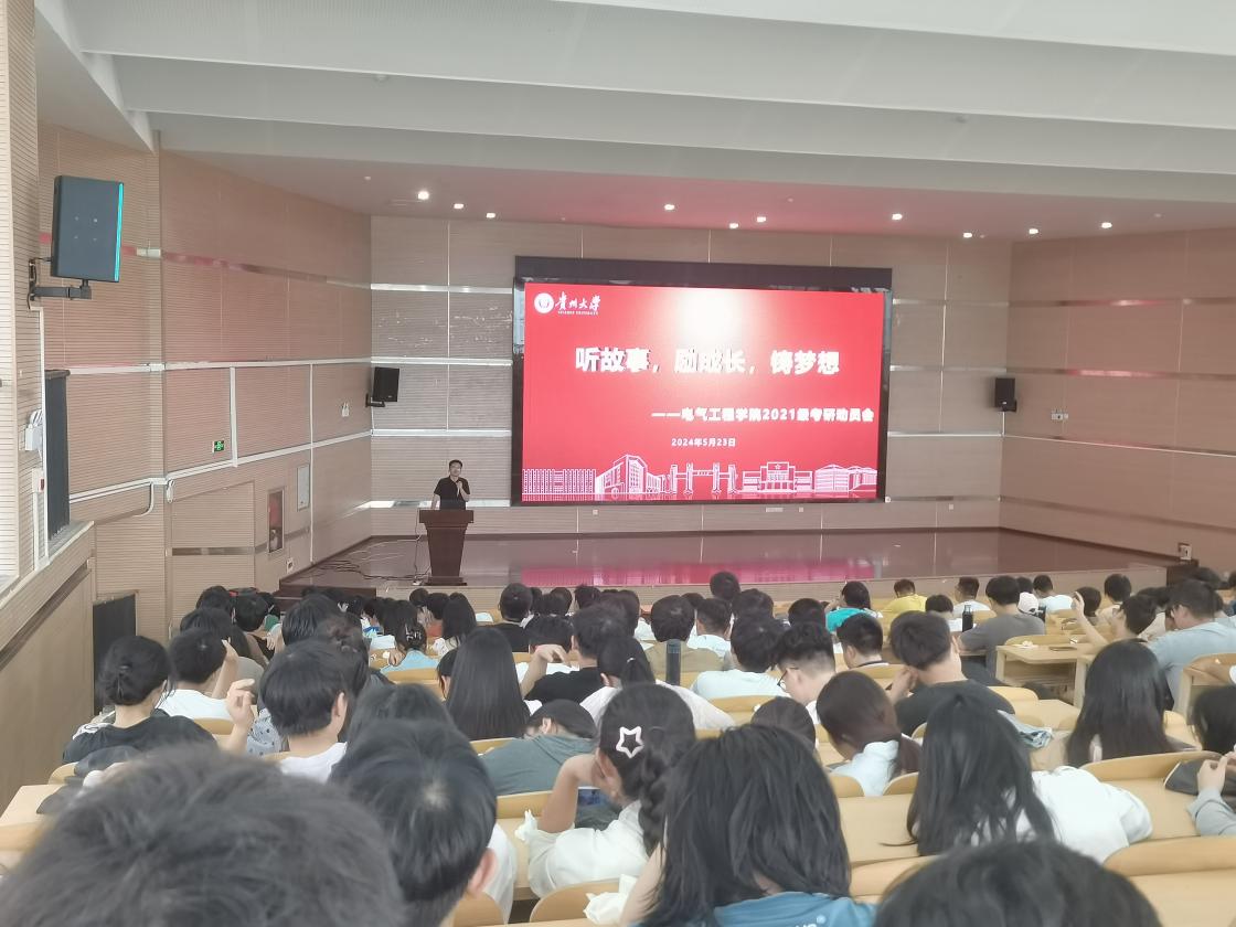 為進一步加深同學(xué)們對考研政策、考研情況、就業(yè)形勢的了解,解決現(xiàn)階段選擇困惑的問題,2024年5月23日中午,學(xué)院在建規(guī)樓2樓報告廳召開了2021級考研動員會。本次活動由學(xué)院輔導(dǎo)員余紅主持,邀請數(shù)學(xué)與統(tǒng)計學(xué)院彭定濤老師、2021級電氣專業(yè)研究生曹國強同學(xué)、2022級電子信息專業(yè)研究生蒲曉云同學(xué)、2022級能源動力專業(yè)研究生安陳同學(xué)、2023級電氣工程專業(yè)研究生張慶玲同學(xué)出席,2021級全體同學(xué)參加宣講。