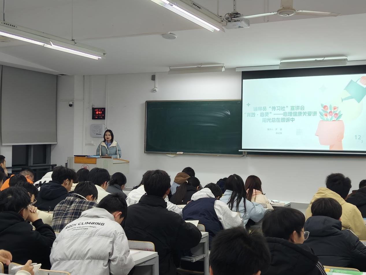 為了幫助學(xué)院2024級新生更快適應(yīng)大學(xué)生活,增強(qiáng)自我心理調(diào)適能力。12月3日,學(xué)院在東樓302D開展了輔導(dǎo)員“傳習(xí)社”宣講會(huì)“育踐·心靈”——心理健康關(guān)愛講座。學(xué)院2024級輔導(dǎo)員羅鑫老師與能動(dòng)232徐進(jìn)強(qiáng)同學(xué)作為本次宣講活動(dòng)主講人,通過專業(yè)指導(dǎo)和溫馨互動(dòng),為新生們的心理健康護(hù)航,助力他們開啟多彩的大學(xué)生活,24級新生代表參加本次宣講。