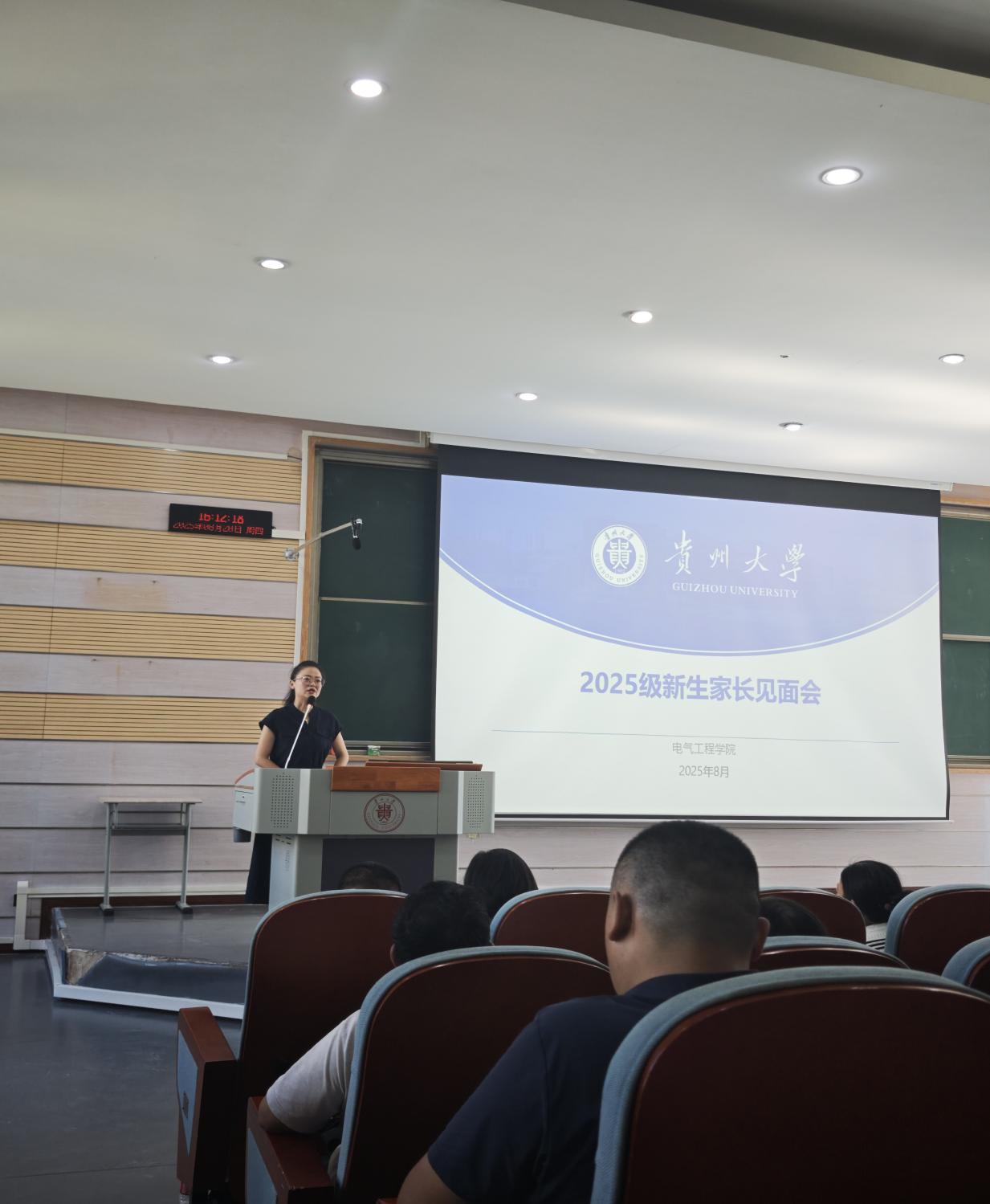 為加強家校溝通,共同助力學生成長成才。2025年8月28日下午,學院在西樓305DT報告廳舉行了2025級新生家長見面會。會議由2025級輔導員余紅主持,學院領導黨委書記劉明鋒、院長張靖、黨委副書記趙曉丹、副院長劉敏、相關系主任、新生班主任和新生家長200余人參會。