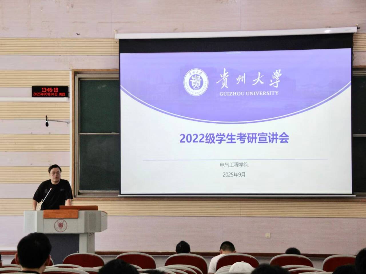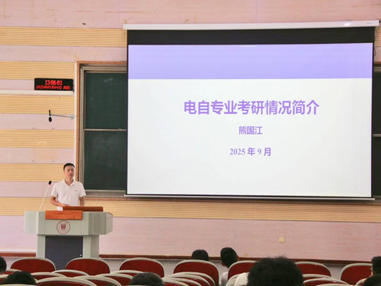 2025年9月4日中午,學院2022級本科生考研宣講會在西校區西樓105報告廳舉行。會議由2022級輔導員陳倩主持,特邀南京郵電大學自動化學院楊楊教授,學院各系主任以及學生代表參會。
