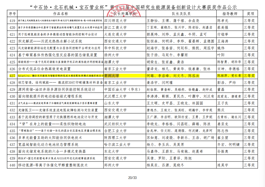SolarLite:融合光伏能效與智能控制的低成本高適配性便攜式儲能系統設計,國家級三等獎。參賽學生:何璐、李啟峰、劉文冬、陳泓汝,指導老師:陳湘萍、黨長青。