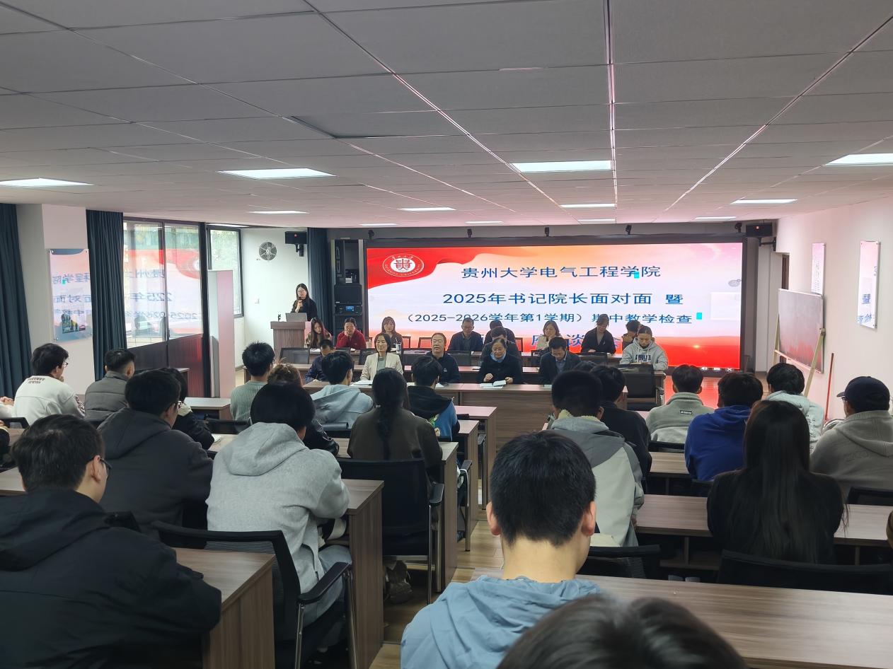 2025年10月30日,學(xué)院在電工樓205開展2025年書記院長(zhǎng)面對(duì)面暨(2025-2026學(xué)年第一學(xué)期)期中教學(xué)座談會(huì),會(huì)議由副院長(zhǎng)陳湘萍主持,校督導(dǎo)組張建峽、學(xué)院領(lǐng)導(dǎo)班子成員、各系主任、各科室老師、各年級(jí)班長(zhǎng)出席會(huì)議。